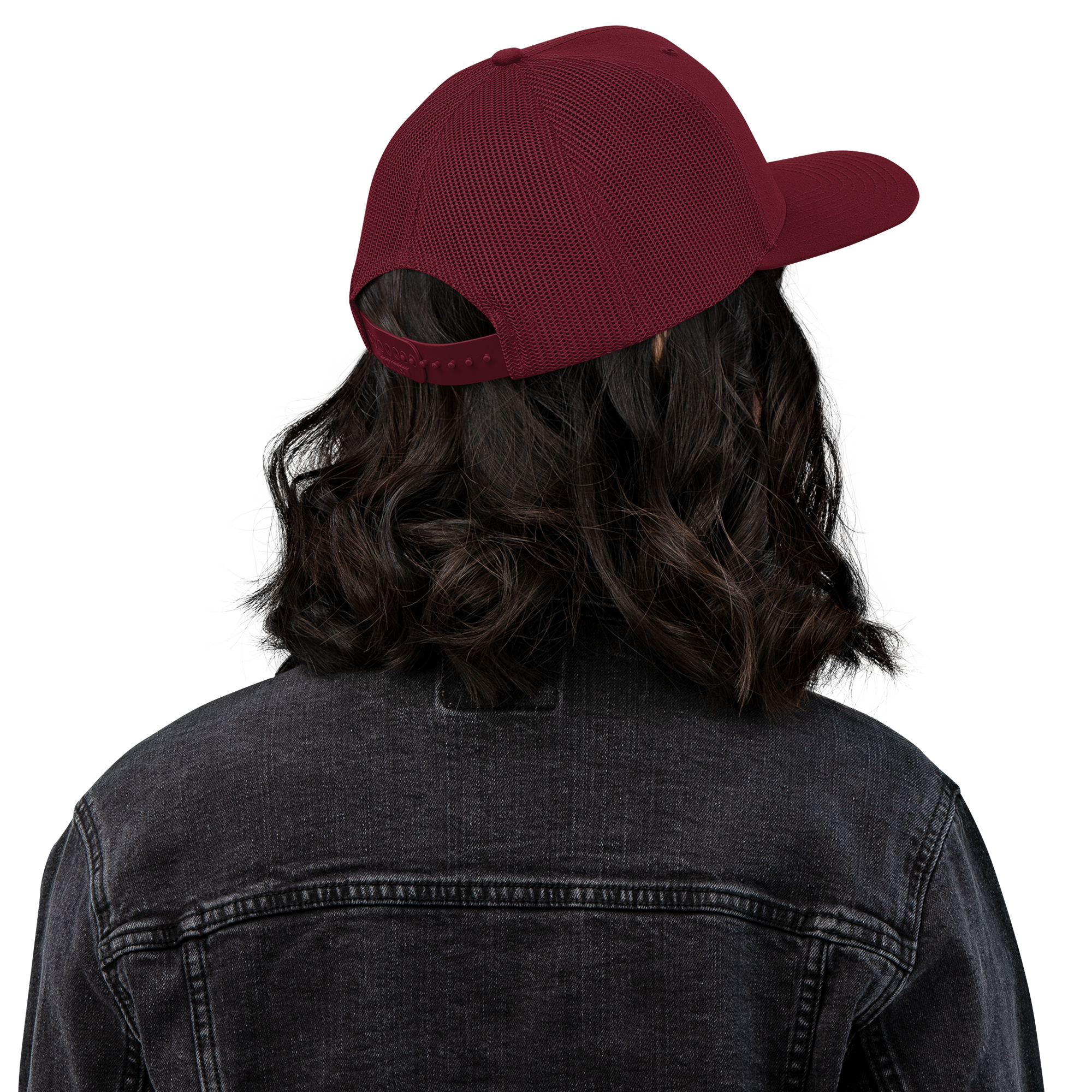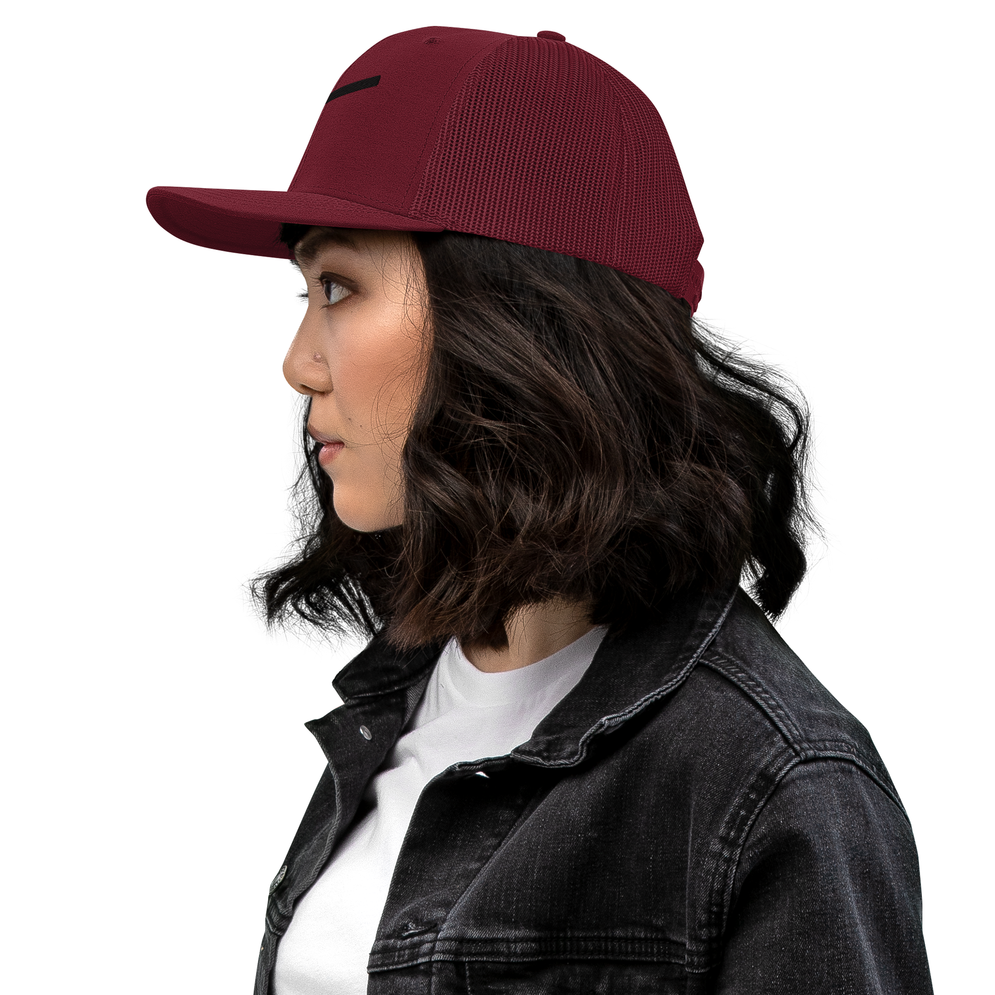 • Cardinal or red-adjacent color Richardson brand trucker hat