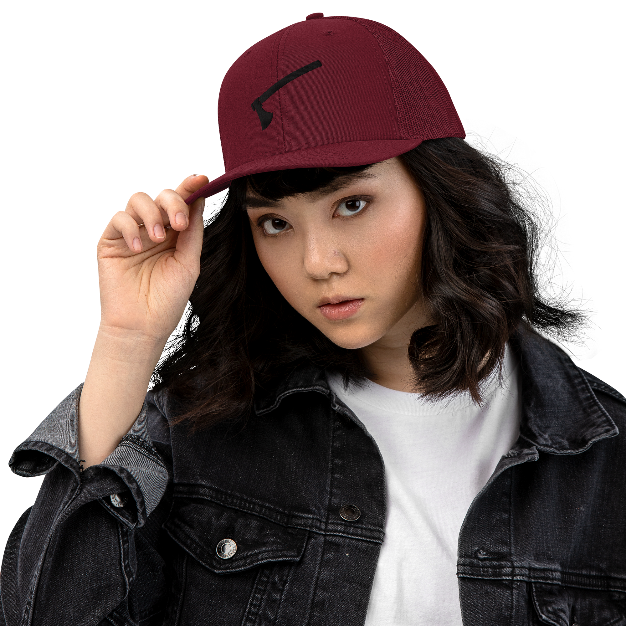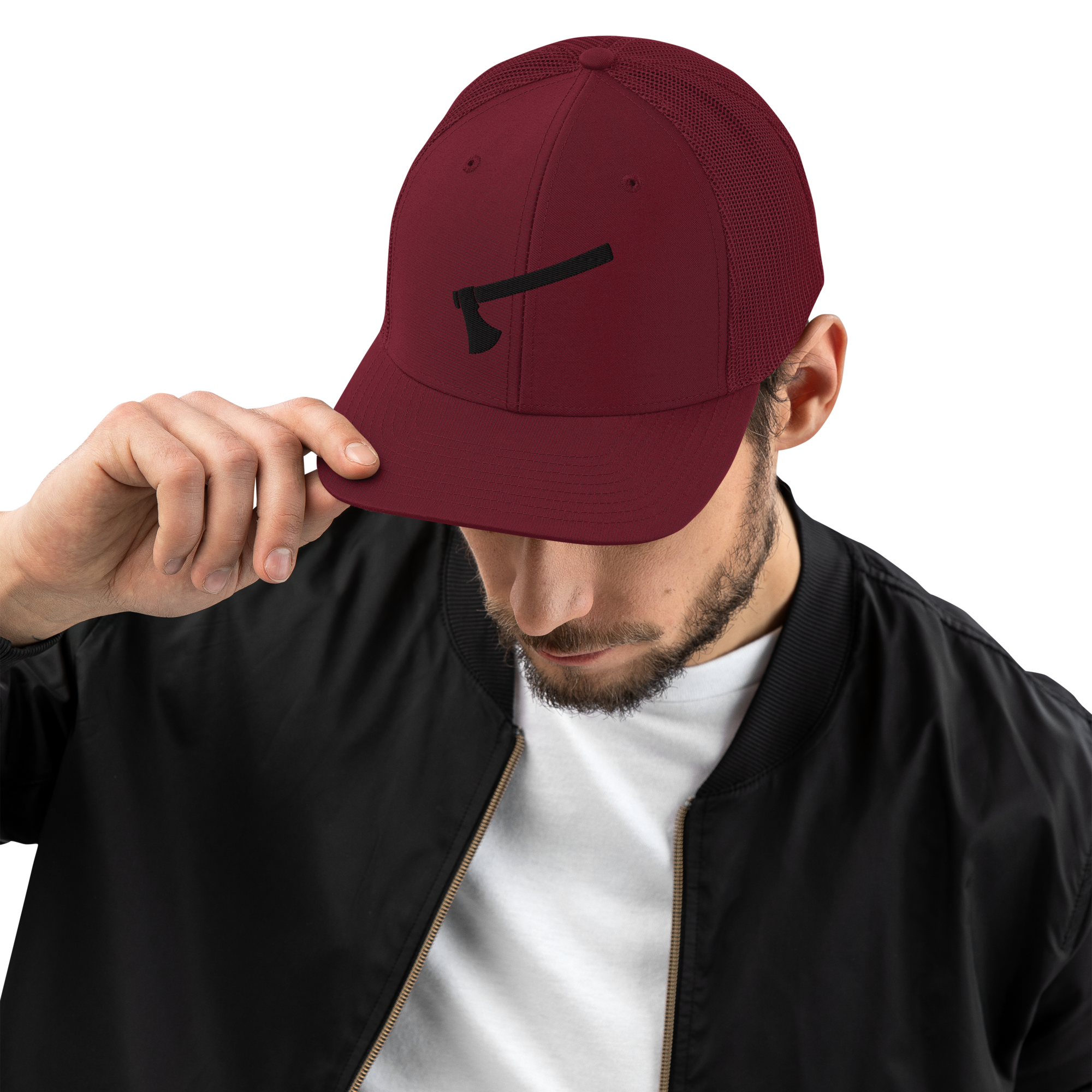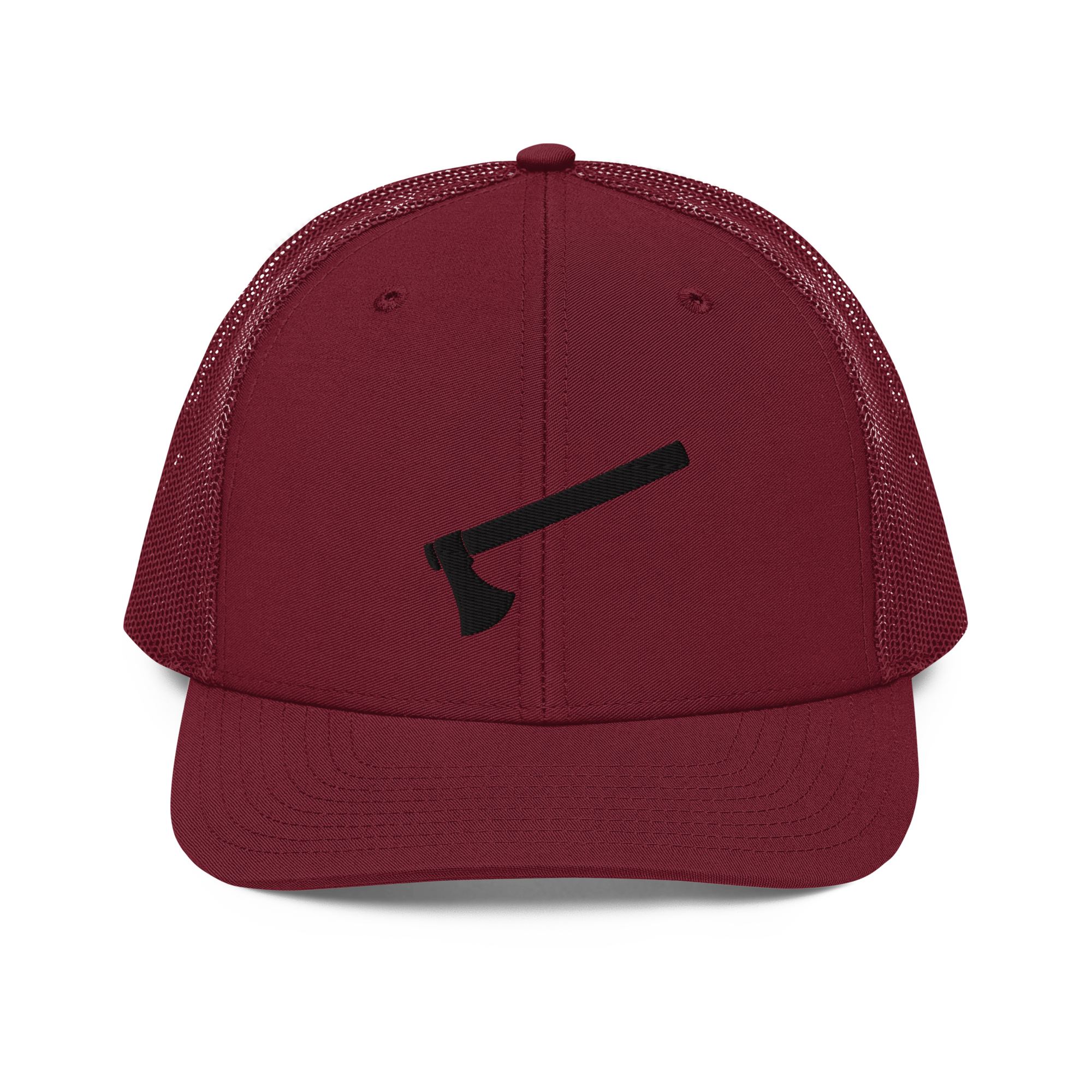 Enjoy life with this Richardson brand trucker style cap showcasing a 3D embroidered stonejax ax.